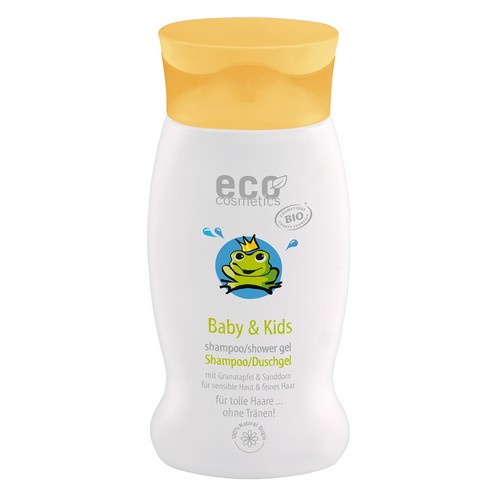 Das ECO Baby & Kids Shampoo/ Duschgel reinigt sanft mit pflanzlichen Tensiden aus nachwachsenden Rohstoffen. Bio Granatapfel- Extrakt und Bio Sanddornblatt-Extrakt mindern durch ihre pflegenden Eigenschaften Trockenheit durch Feuchtigkeitsverlust nach der Dusche. Pflanzliches Betain und pflanzliches Glycerin binden ebenfalls Feuchtigkeit und machen das Haar besser kämmbar. So ist das ECO Baby & Kids Shampoo/ Duschgel auch bei langen, feinen Haaren und bei trockener, sensibler Haut geeignet.
