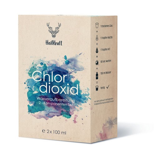 Das 2 Komponenten-Set besteht aus 22,5% Natriumchlorit und 3,5% Salzsäure in Violettglas-Pipettenflaschen zur Herstellung von Chlordioxid oder einer Chlordioxidlösung (CDL). Chlordioxid wird bereits seit langem zur Desinfektion von Trinkwasser oder auch Lebensmitteln eingesetzt.
