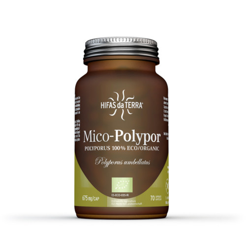 Mico Polypor ist ein hochkonzentriertes Nahrungsergänzungsmittel mit 70 Kapseln aus 100% biologischem und reinem Extrakt (6:1) aus Eichhase (Polyporus umbellatus) mit einem hohen Gehalt an Nährstoffen wie ß-Glukan, Kalium und Vitamin D2.