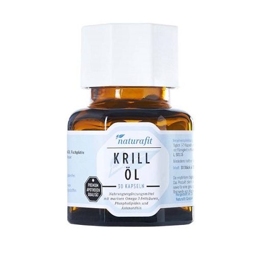 naturafit Krill-Öl wird aus dem antarktischen Kleinkrebs Krill gewonnen und ist ein rein natürliches, marines Produkt. Es ist reich an Omega-3-Fettsäuren – gebunden an Phospholipide und damit leicht vom Körper aufzunehmen – und Astaxanthin, einem starken Antioxidans. naturafit Krill-Öl kann daher auf vielfältige Weise einen positiven Einfluss auf den menschlichen Organismus ausüben. Im Gegensatz zu Fischöl stößt Krill-Öl nicht auf und erzeugt keinen fischigen Geschmack. Es ist daher auch für Kinder geeignet.