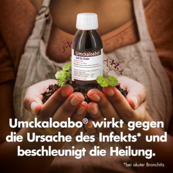 Umckaloabo für Kinder enthält einen natürlichen Wirkstoff aus Pelargonium sidoides-Wurzeln. Das gut verträgliche pflanzliche Arzneimittel erhalten Sie in Form von Saft oder als wohlschmeckender Sirup. Umckaloabo für Kinder